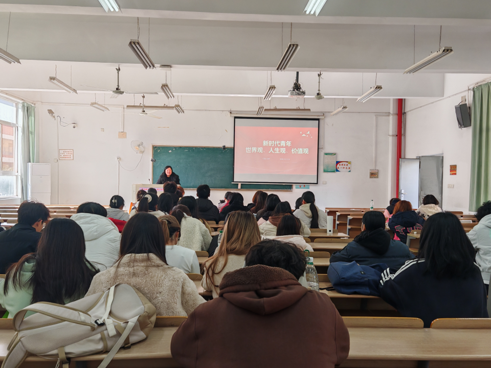 最后, 她鼓励同学们学习理论知识的同时,也积极参与志愿服务和社会实践,在实践中加深认识。课堂上,她特别列举了青年科技工作者攻坚克难、基层青年干部服务乡村、青年志愿者热心公益等实例,说明“人生价值在于奉献”并非空泛的道理,而是可以在不同岗位上践行的具体选择。