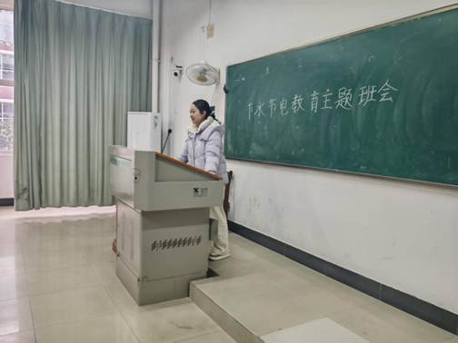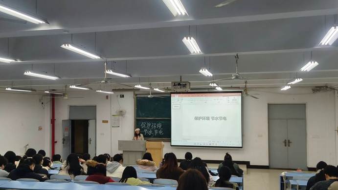 周清梅老师向全体同学发起《大学生节水节电倡议》,积极引导学生们节水节电,强调节水节电的重要性。通过PPT向学生们普及了节水节电知识。PPT展示我国水资源短缺的现状,以及浪费水资源带来的严重后果。老师分享了一些节水小妙招。同学们分享自己的节水经验和心得。
