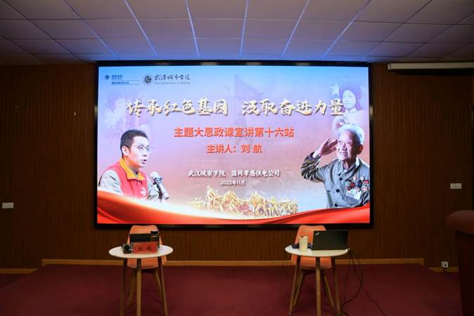 新闻网讯(通讯员 付紫芯、李忻宇)2025年11月27日晚,我校2025年“落雁论坛·新生讲堂”第三期在南一(2)号报告厅开讲。本期论坛以“传承红色基因,汲取奋进力量”为主题,特邀电影《上甘岭》女卫生员王兰的原型王清珍之孙、国网孝感供电公司红领志愿宣讲员刘航老师担任主讲,为现场师生带来一场深刻的思想洗礼。校长助理严建参加了本期论坛。
