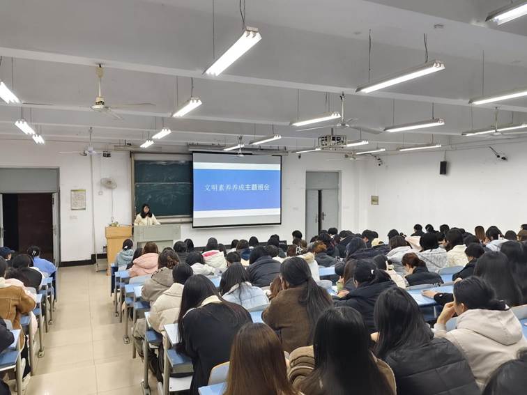 为进一步培育学生文明行为习惯,营造整洁有序、和谐向上的校园氛围,2025年10月26日,医学部2024级辅导员邵哲、刘添添、郝瑜给2024级护理专业学生召开了大学生文明素养养成主题班会,引导同学们将文明素养内化于心、外化于行。