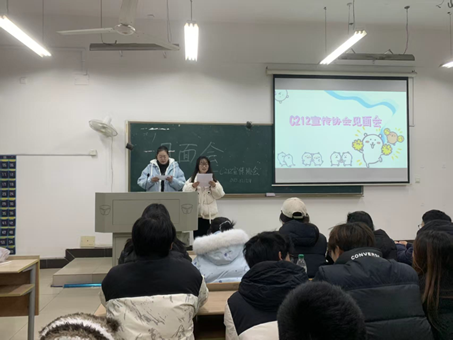 在自我介绍环节,各位部员依次走上台前,分享了自己的专业、兴趣爱好以及加入协会的初衷与期待。不少同学都表达了对招生宣传工作的热情,以及想要在实践中锻炼自我、结交伙伴的愿望。发言过程中,主持人穿插趣味互动,让整个环节更具趣味性。游戏结束后,还安排了拿着对联合影留念的环节,为本次见面会增添了不少喜庆氛围。
