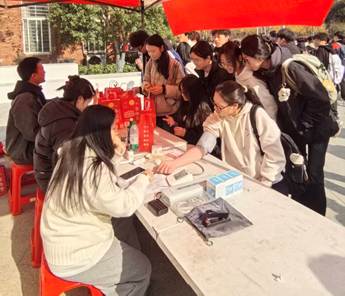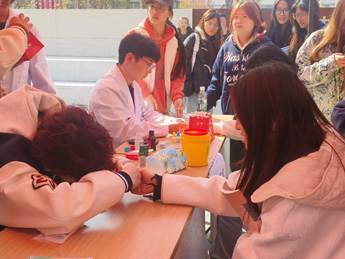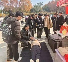 活动聚焦知识普及与技能实践,通过现场讲解,清晰传达了艾滋病传播途径、科学预防及检测治疗的核心知识。急救技能环节设置心肺复苏实操教学,由协会成员逐步演示关键步骤,并提供一对一指导,有效提升了参与者的应急救护能力。免费血压、血糖、血型检测服务获得积极响应,帮助同学们便捷了解自身健康状况。活动现场同时派发红丝带、定制纪念品及健康礼包,在互动中传递“科学防艾、平等关爱”的理念。