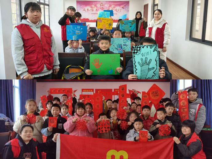 S25级视觉传达设计专业汪锋,在湖北阳新社区开展12天暖心托管,针对留守儿童看护难、学业弱问题,打造“学业辅导+素质拓展+安全教育”多元课堂,用陪伴呵护童心成长;25级视觉传达设计二班周梅燕,投身“返家乡”爱心班志愿服务,负责孩子们功课辅导与兴趣活动开展,针对孩子学习理解薄弱、自信不足的问题,创新具象化教学方法,以鼓励式引导帮助孩子克服学习畏难情绪,用暖心陪伴守护童心成长。