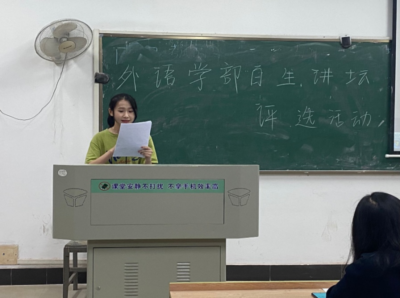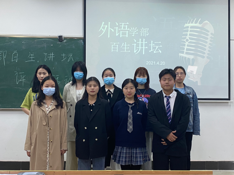 (记者 陈星)为深入学习并领会习近平新时代中国特色社会主义,宣传贯彻“党的十九届五中全会精神”,武汉城市学院外语学部于2021年4月23日下午16:00于教学楼南5105教室开展了百生讲坛优秀主讲人评选活动,此次活动共从各班级选拔出9名优秀的选手,参加最后的评比。参加本次活动的评委有外语学部主席团成员主席团成员,以及邀请来的各位评审嘉宾。