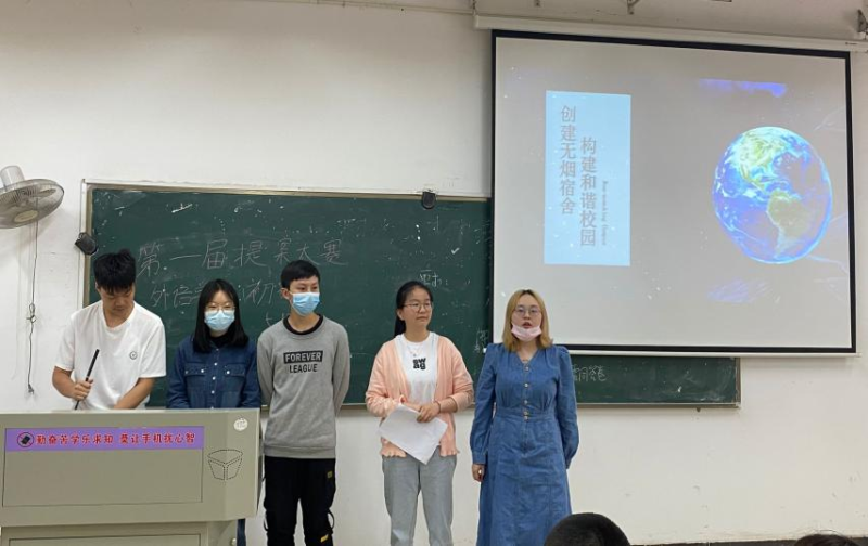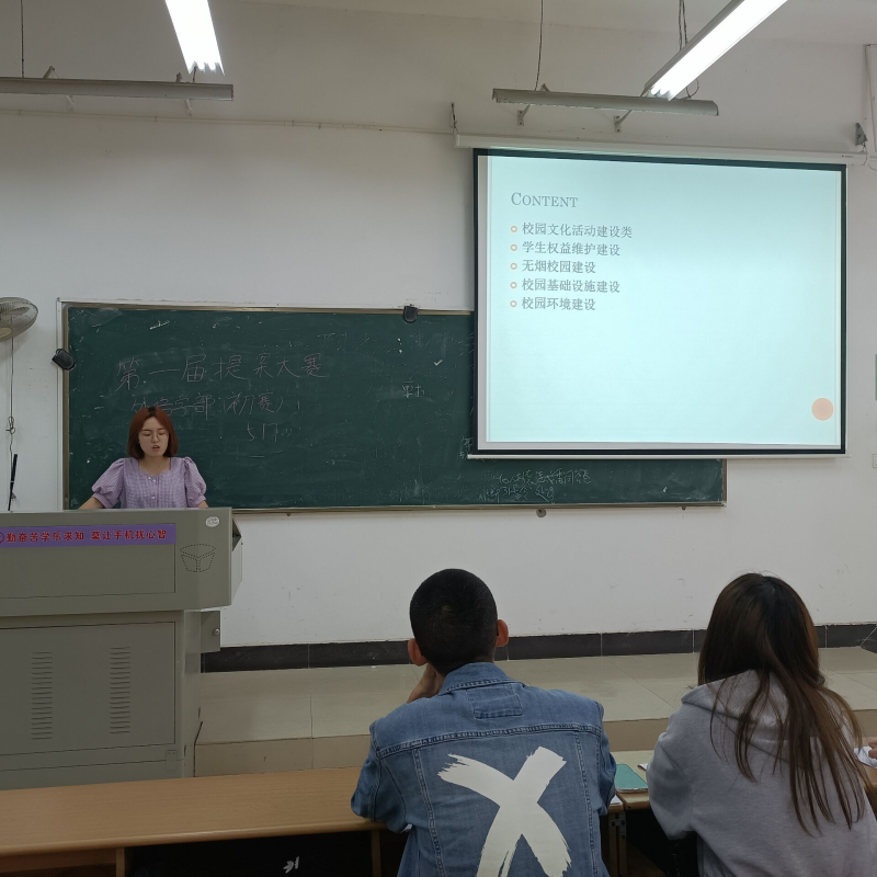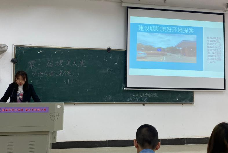 比赛正式开始,各团队依次进行了提案展示和答辩,各队伍的提案数据详实,内容丰富,大家针对学校发展的各个方面建言献策,包括后勤保障、基础设施、校园安全、学生发展、文化建设、卫生保洁等多个领域。选手们淡定从容,用精辟的语言阐述队伍的观点和立场,提出了针对性问题并给出了相应的解决方案。来自20级英语2班的同学提出了“校园内公众场合吸烟泛滥”的问题,建议应加大倡导和惩罚的力度,来自20级英语4班的同学则注意到了“校内基础设施建设应提高”的问题。评委们对各组提案做出了点评,并指出提案中存在的问题和不足,各组展示完后,现场评委老师肯定了同学们认真细致的调研精神和积极参与校园建设的主人翁意识,表示会将这些好的想法反馈给相关部门。现场评委投票打分,最终由英语六班、日语二班、英语四班、英语三班以及英语二班这五支队伍脱颖而出进入决赛。