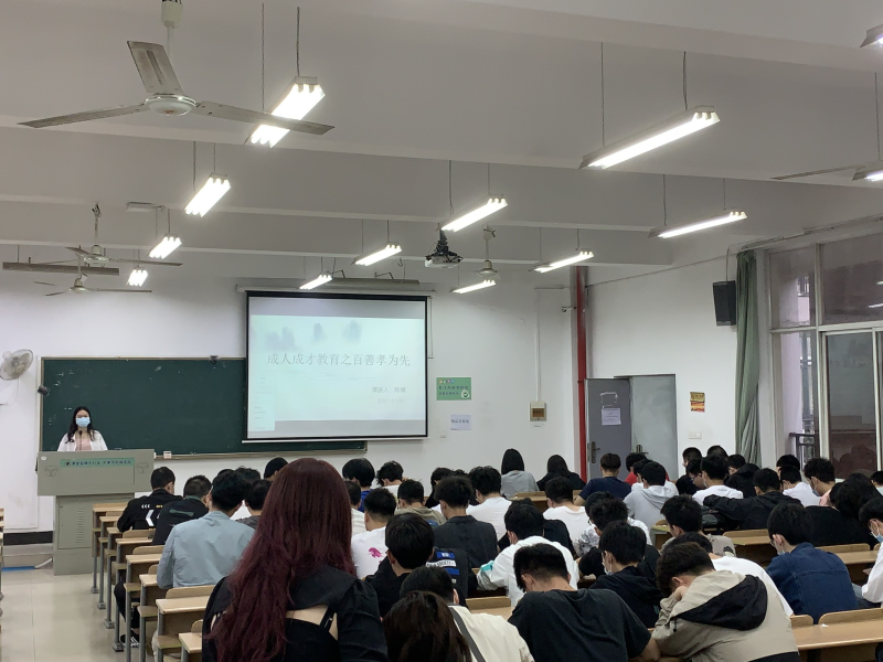 2021年5月23日在南五教学楼5303教室,信工学部2019级计算机科学与技术8班学生开展了以百善孝为先为主题的成人成才教育活动,活动中,同学们热情饱满,积极参与,认真聆听,共同感受中国传统孝道。