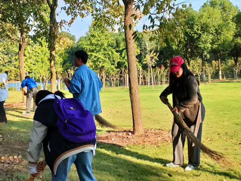 (记者:刘春艳)2021年10月21日下午四点,武汉城市学院外语学部21级英语1班在辅导员闫艺的带领下,对校园北门绿地进行卫生打扫,清理绿地上的落叶,为同学们创造一个干净整洁的校园环境,做出自己的努力。