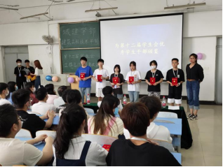 颁奖完毕后,学生会副主席兼艺术团团长夏晓晓宣布第十二届城建学部建筑工程技术学部学生会社团任命结果,并由周青老师为第十二届学生会社团颁发聘书。