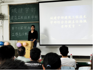 在观看完城建学部、建筑工程技术学部学生会工作总结视频后,城建学部学生会主席岳鹏程上台讲话,他首先肯定了学生会在将近一年的工作中的努力与成果,然后总结了工作中的得与失,并代表学生会承诺在接下来的工作中一定吸取经验,弥补不足,带领学生会更好地开展工作。