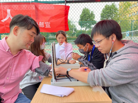 罗主任、李主任现场示教CPR及测量血压并为他们进行一对一讲解,吸引了很多同学积极参与到本次活动中。