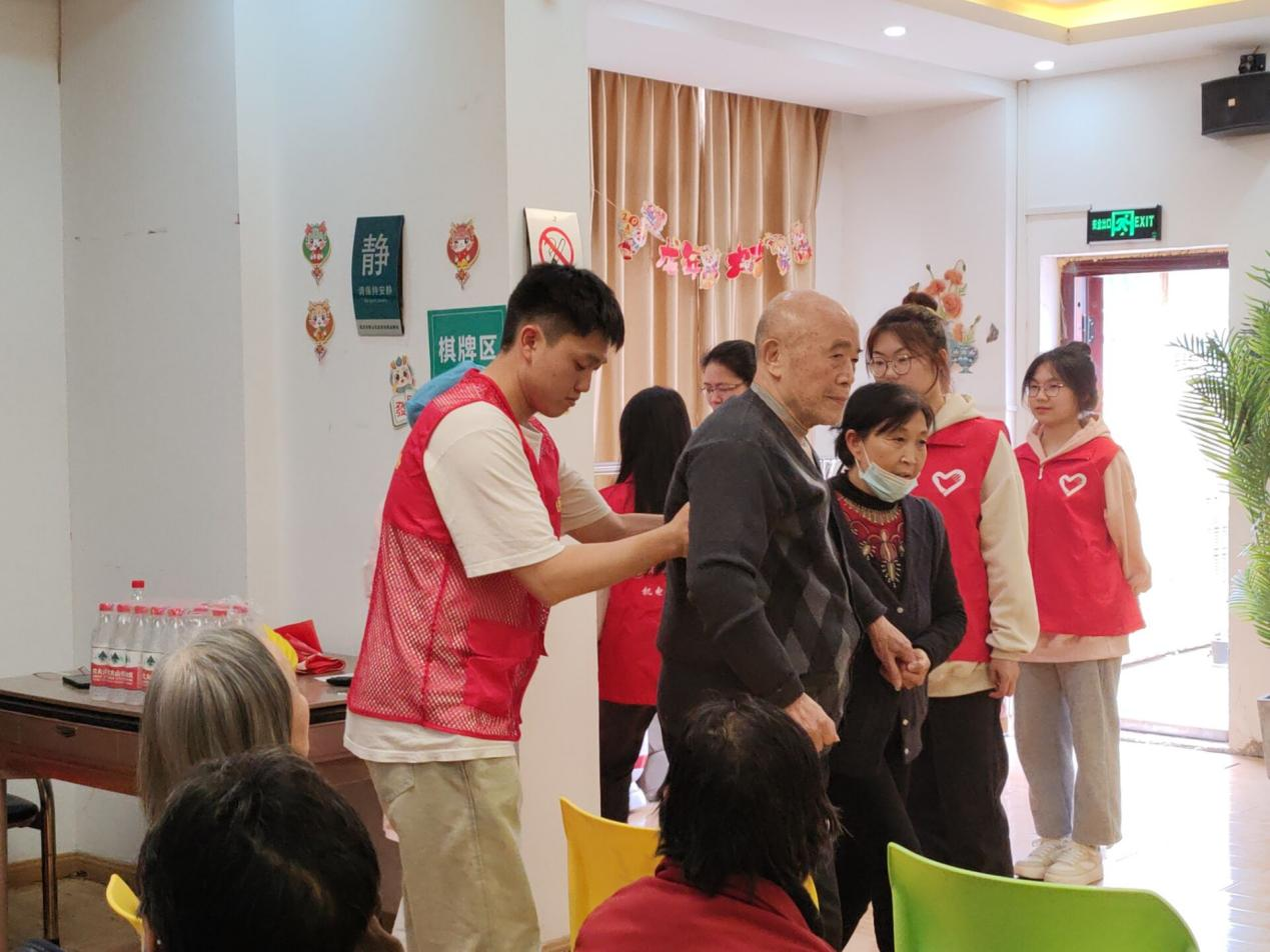 志愿者22级药学1班侯雨欣说到:“养老院的老人们多数都缺乏家人的陪伴,表演节目时看到他们脸上的笑容真的感到很温暖。我和李舒睿同学在陪郭爷爷聊天的过程中发现他无法说话,一直看着我们微笑,后来从书记口中了解到这是一位中风五次、大脑一半缺失的八十五岁高龄爷爷。看到爷爷眼里饱含泪水的那一刻,我们意识到青年人关爱照顾老年人的责任——随着人口老龄化的增加,我们应当主动学习基础护工知识,践行社会主义核心价值观。“