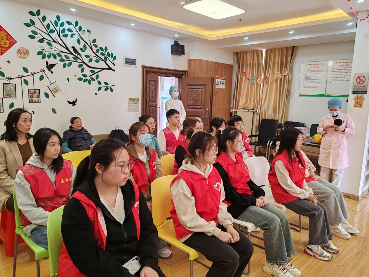 (通讯员:李舒睿)情满养老院,爱心公益行。三月正值雷锋月,为继承和发扬中华民族爱老敬老的传统美德,2024年3月22日下午2左右,医学部学生党支部书记孙芳、周清梅带领入党积极分子来到武汉市青山区武东西街社区医院养老中心开展“情暖夕阳•爱心敬老“志愿服务活动。