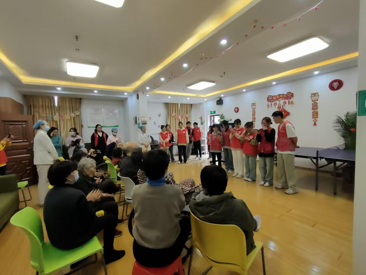 先由机电学部的同学们带来一首《想见你想你》及一支热舞将现场气氛活跃起来,随后医学部的同学们演唱了《蝴蝶泉边》、《荷塘月色》等歌曲,引得台下连连叫好,掌声不断,老人家们喜笑颜开!青春与活力在接待室里传递开来,平日里安静的养老院也增添了几分喜庆祥和的色彩。