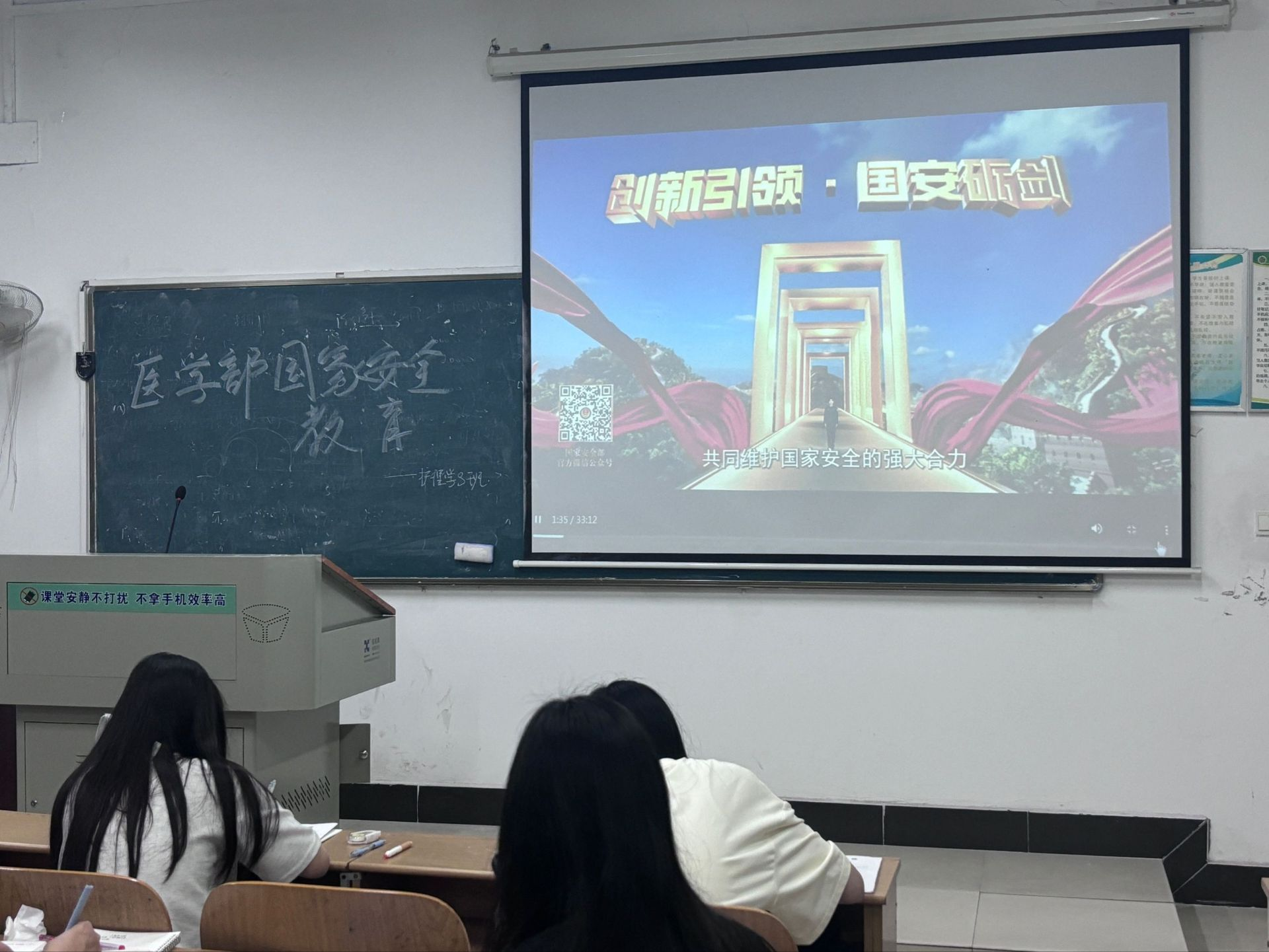 2022级本科、2023级专科同学利用晚自习时间,以班为单位集中观看了4·15全民国家安全教育日重磅专题《创新引领·国安砺剑》上集,该专题片总结回顾总体国家安全观提出十年来,特别是党的二十大以来国家安全机关破获的十个重大间谍案件。通过这十大典型案例,起底境外间谍情报机关渗透、窃密、策反的各式卑劣手法,树牢人民群众的反间防谍意识,让间谍“无处遁形”。