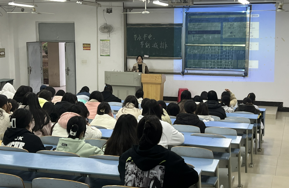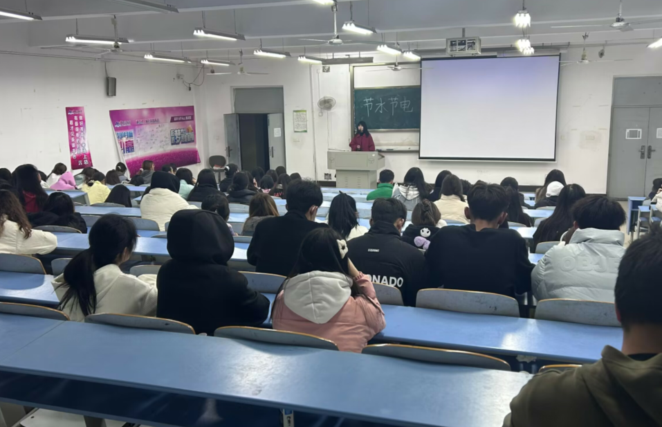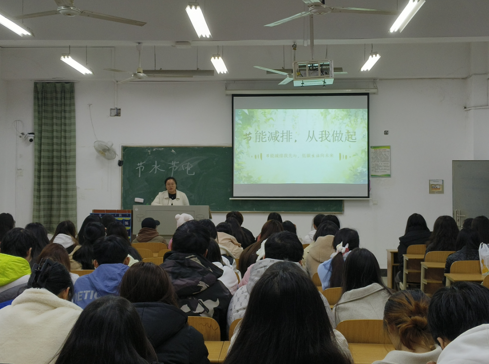 辅导员金文思在班会上提出,节能减排,从我做起”的倡议,希望学生能够做到人走断电,并提议每班坐在第一排和最后一排靠墙的同学下课后,离开教室前主动关灯。在寝室内尽量关闭电源开关,一方面可以预防失火,另一方面可以节约用电。
