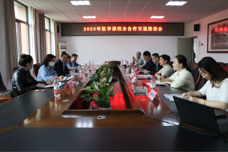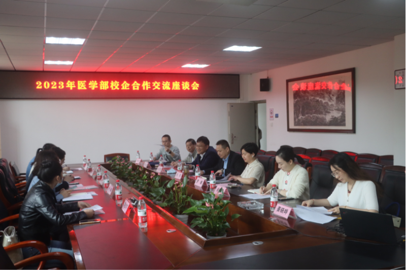 罗健向青山化工园介绍了医学部的基本情况,并表示在我校医学部药学系学生皆为普通高考的全日制本科生后,得到了青山化工园许琼的高度赞扬。