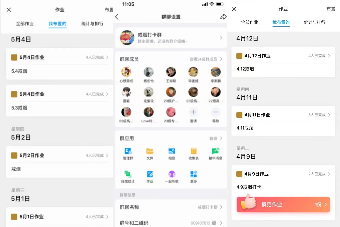 共有54同学加入到活动中,经过31天的打卡,共有4名同学成功戒烟。