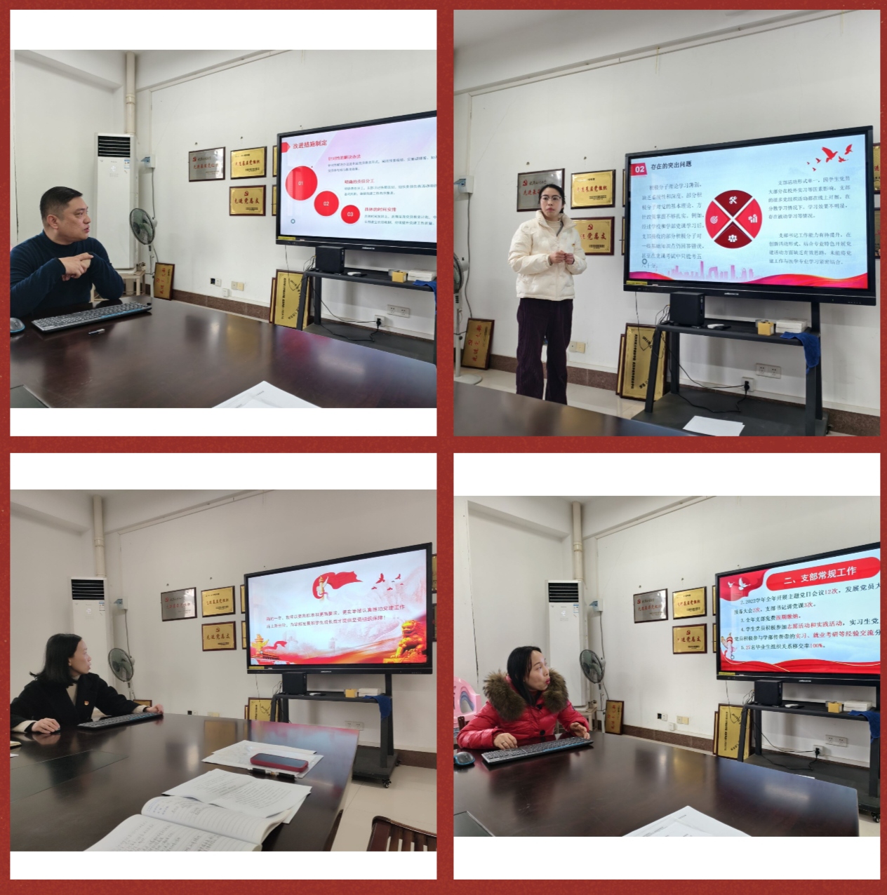 教工一支部书记蔡洲紧扣党的教育方针,围绕立德树人根本任务,结合教学科研实际,详细汇报了过去一年在加强党员教育管理、提升党组织凝聚力、推动课程思政建设等方面的工作成效。通过丰富的案例和数据,展现了党支部在发挥战斗堡垒作用、引领教师队伍成长方面的积极贡献,充分体现了以党建促教学、以教学强党建的协同发展理念,有力地彰显了党的领导在教育教学中的核心引领作用。
