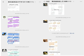 在这长达19周的时间里,同学们认真对待每一天的打卡,并且坚持每日在群里分享学习成果,并进行记录。有些在实习的同学们,忙碌之余也不忘努力背单词。非常值得我们赞扬与学习。当然同学们英语打卡的App也各式各样。“百词斩、万词王、流利说、词达人”……。坚持不是一种选择,而是一种态度,是对自己、对生活的一种承诺。本次打卡学习的过程中不仅增强了学生们持之以恒的决心,也提升了同学们的英语能力。为大家四六级考试奠定了坚实的基础。