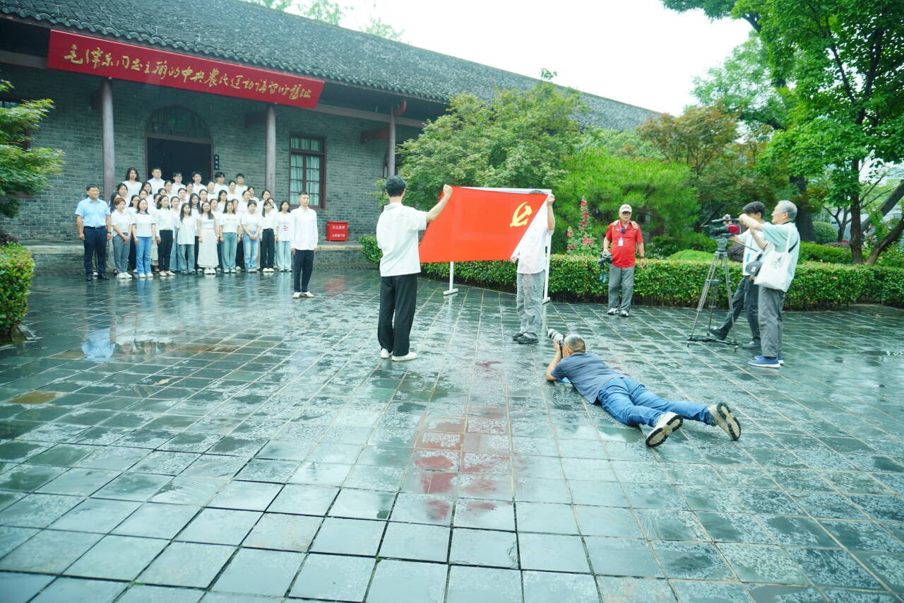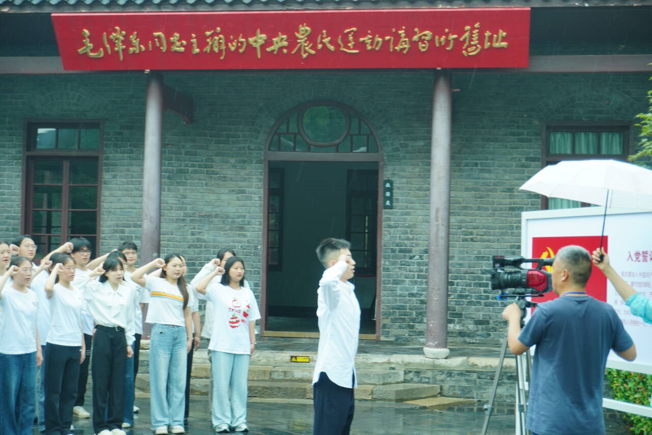 随后,全体毕业生党员在党旗下庄严列队,在优秀共产党员李哲煊同学的领誓下,高举右拳,重温入党誓词。一句句铿锵有力的誓言,响彻会场,不仅唤醒了党员们入党时的初心,更坚定了他们为共产主义事业奋斗终身的决心。整个宣誓过程被中央电视台《红色种子》专题纪录片全程录制,使全体毕业生党员倍感激动和神圣。