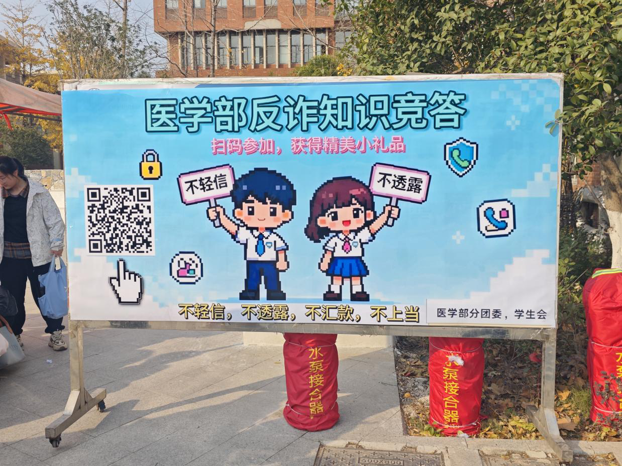 (通讯员:毛佳丽)为提高全体学生学生文明素养,提升校园文明层次,营造优美、平安的校园环境,2025年12月2日,我校医学部举办平安校园反诈知识竞答活动,通过趣味互动形式提升学子反诈防骗意识,为平安校园建设筑牢根基。