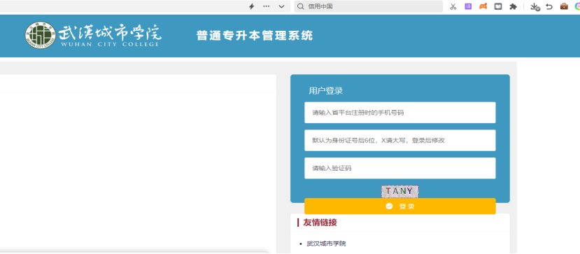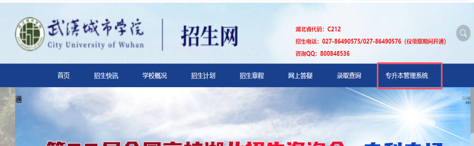 1、登录武汉城市学院官网(https://www.wic.edu.cn)—— 招生网——专升本管理系统